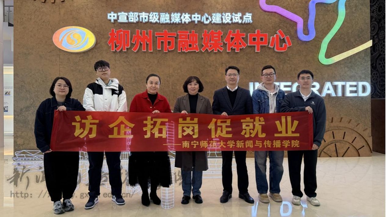 为贯彻落实学校2026届毕业生就业工作部署,精准对接行业人才需求,拓展优质就业资源,12月4日下午,新闻与传播学院党委副书记黄敏带队前往柳州市融媒体中心开展访企拓岗。此次活动旨在进一步深化学校与媒体机构的合作,为毕业生拓宽高质量就业渠道。