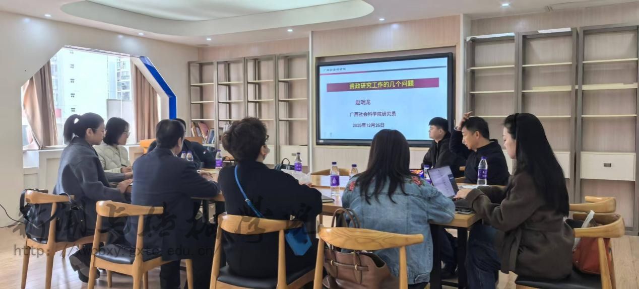 12 月 26 日上午,新闻与传播学院邀请广西社会科学院中国 — 东南亚国际(地区)问题研究学部主任赵明龙研究员,在明秀校区文星楼 506 教室举办咨政报告与课题申报专题讲座。学院全体教师到场聆听学习,现场学习氛围浓厚。