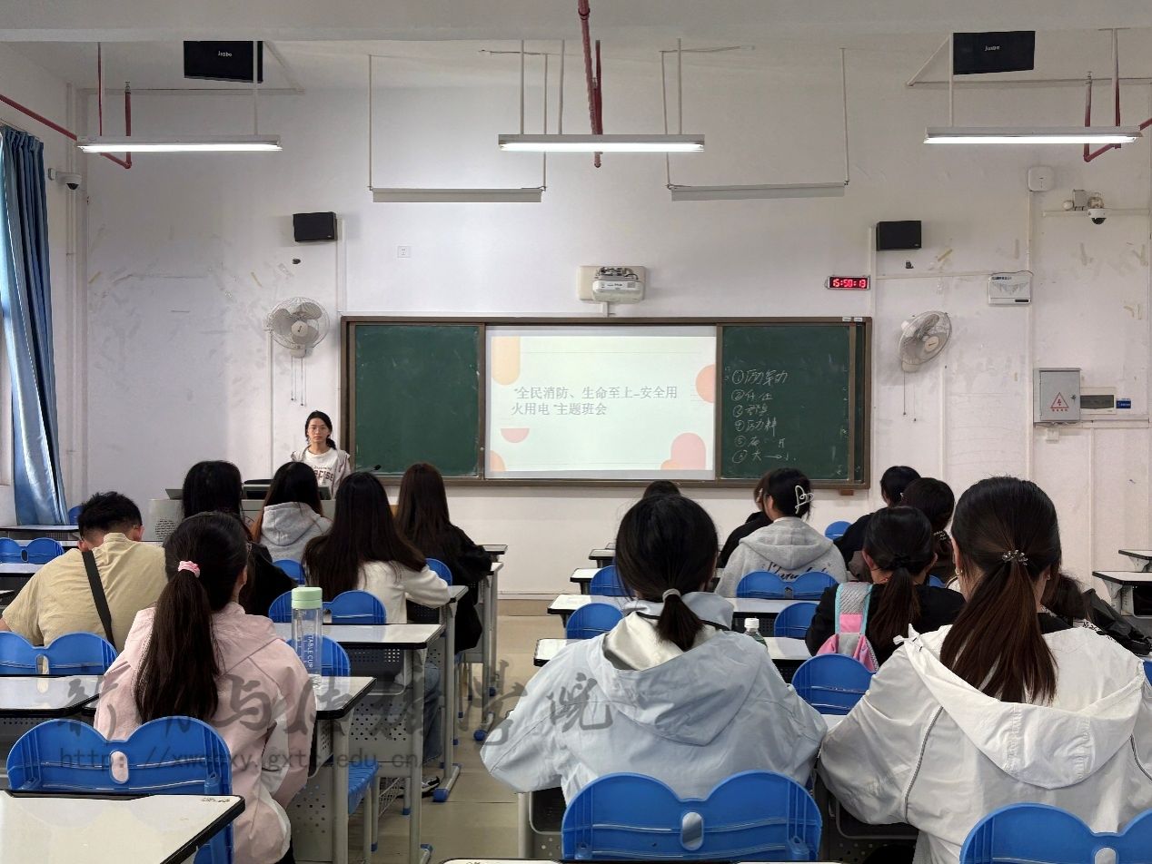 班会上,各班级重点围绕校园用火用电中存在的风险隐患展开讲解,包括违规使用大功率电器、私拉乱接电线、宿舍区域易燃物堆放等问题,引导学生识别常见安全隐患,增强防范意识。23级广告专升本班围绕“校园用火用电风险隐患”“安全用火用电规范”“火灾应急处置方法”三大主题,组织同学们开展消防安全专题学习。23级广电班则聚焦消防知识科普,通过系统讲解全国消防日的设立背景与历史沿革,向同学们普及了消防设施功能、火场自救技巧等基础常识。