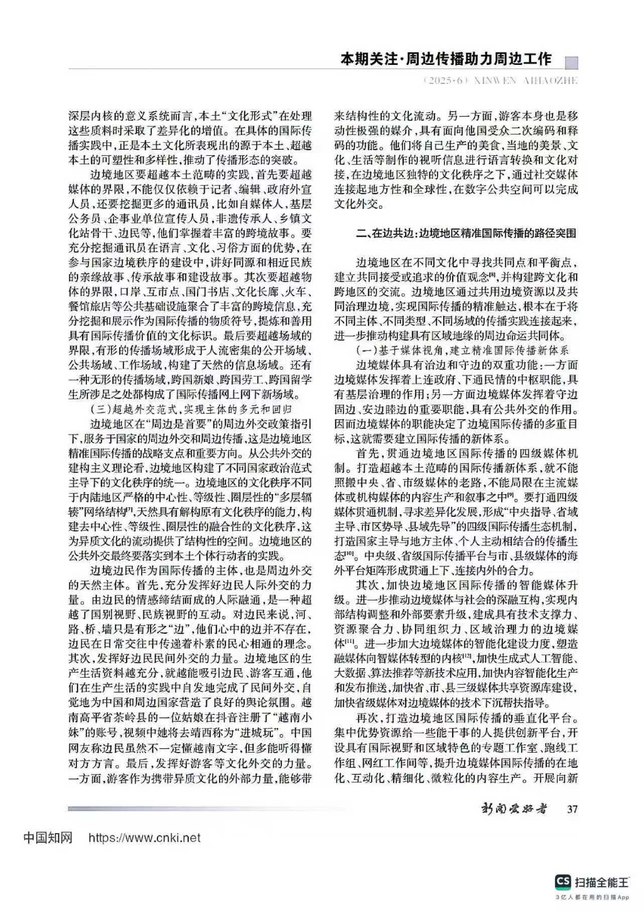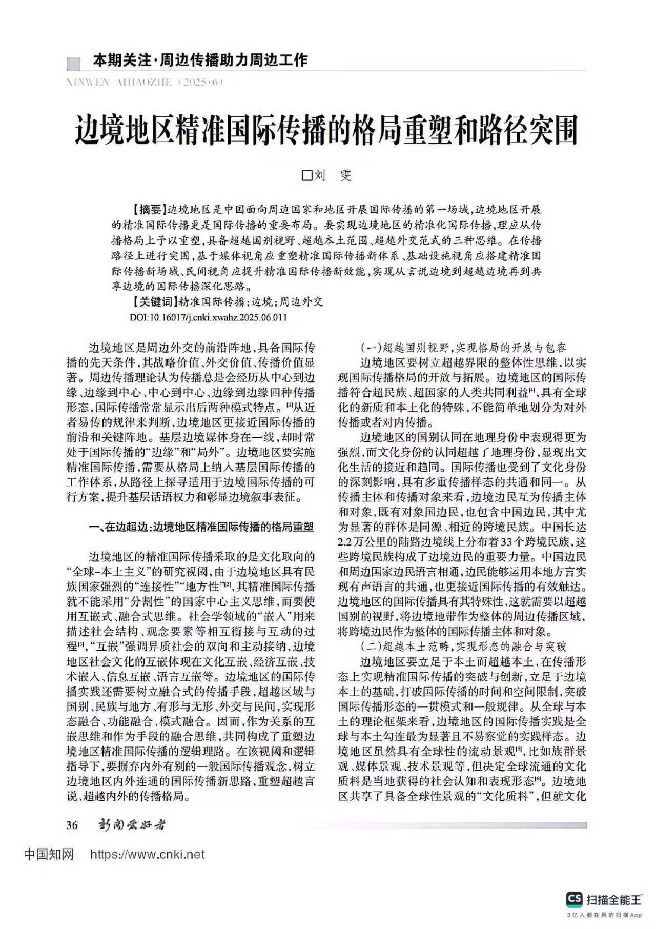 《边境地区精准国际传播的格局重塑和路径突围》