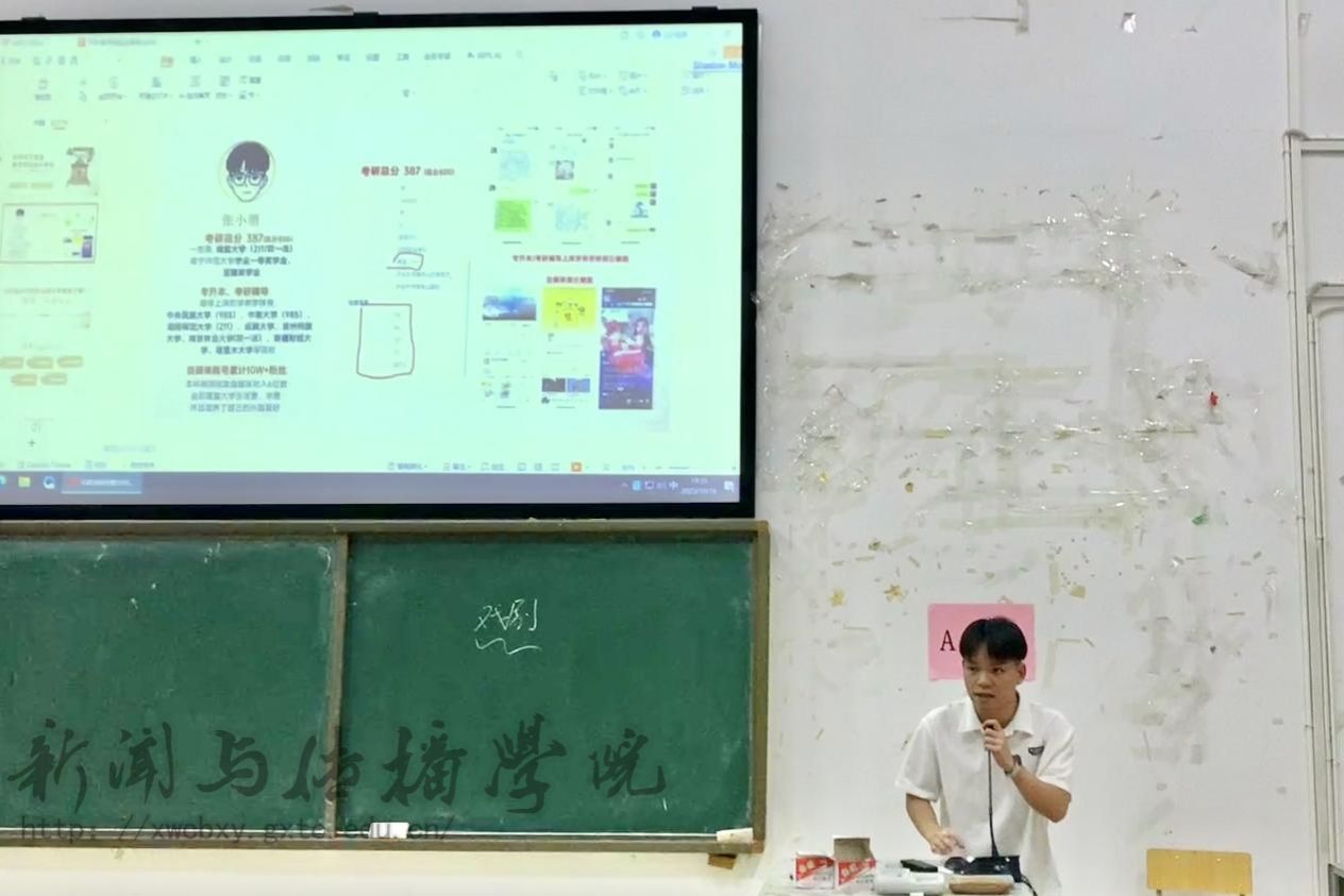 在学习方法与心态调节方面,25级专硕魏楷复盘了自身本科阶段的经验教训,强调要平衡好理论学习与实践探索的关系,并以传播学“符号”概念为例,生动阐释了文科专业的学习拓展路径;24级的张晓洁同学聚焦学习心态调节,强调持之以恒的重要性,引导同学们坚信量变引发质变的道理,脚踏实地推进既定目标。