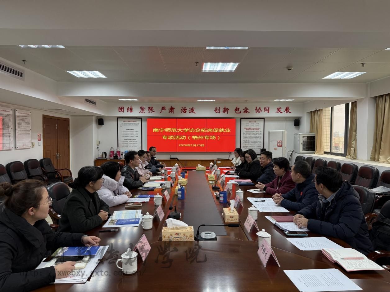 为深入贯彻学校党委行政关于推进2026届毕业生就业工作的总体要求,切实拓宽毕业生就业途径、提高就业质量,1月23日,学院党政领导班子一行3人跟随由学校党委常委、副校长张松涛带队的学校专项工作团队,前往梧州市开展访企拓岗专项调研活动。