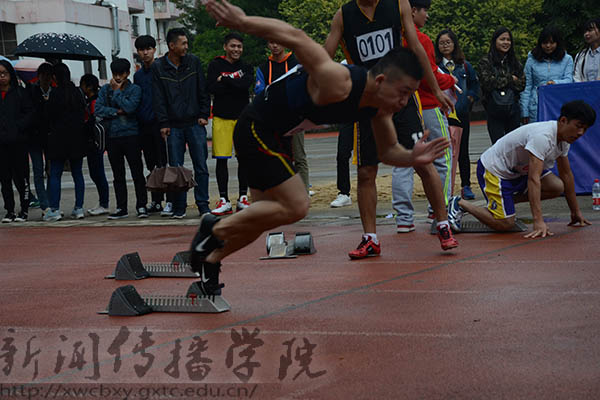 赛前我院运动员认真地热身,旁边的啦啦队员们奋力的打气。一句句高亢的“新传加油”的呐喊声振奋人心。比赛即时开始,由于设备问题打枪多次未响,但我院运动员仍镇定的做好就位准备。真正的枪响时,我院运动员奋力起跑,在一句句的加油声下卖力地冲向终点。周边所有人助威时不忘紧盯终点,期待着运动员们的最后表现。有付出必有回报,最终我院运动员陈岩、韦文波、林阳赛跑成绩分别为14.0秒、12.48秒、12.8秒。其中韦文波成功的进入决赛。
